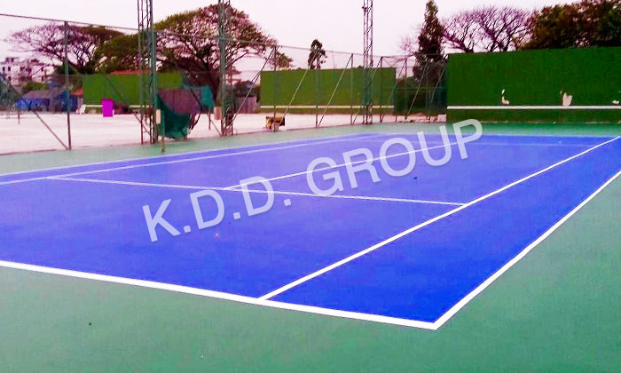 พื้นสนามเทนนิส มีลักษณะผิวหน้าเรียบ ไร้รอยต่อ ลดแรงกระแทกได้ดี สามารถทำในร่มและกลางแจ้ง วัสดุที่ใช้เป็นเม็ดยางสังเคราะห์และเคลือบหน้าด้วยสีอะคริลิค 100% เป็นพื้นที่ได้มาตรฐานใช้เป็นสนามกีฬาอเนกประสงค์ได้ เช่นสนามวอลเลย์ สนามบาสเกตบอล สนามแบดมินตัน ยิมเนเซี่ยมและสามารถใช้สถานที่จัดเลี้ยงสังสรรค์ได้